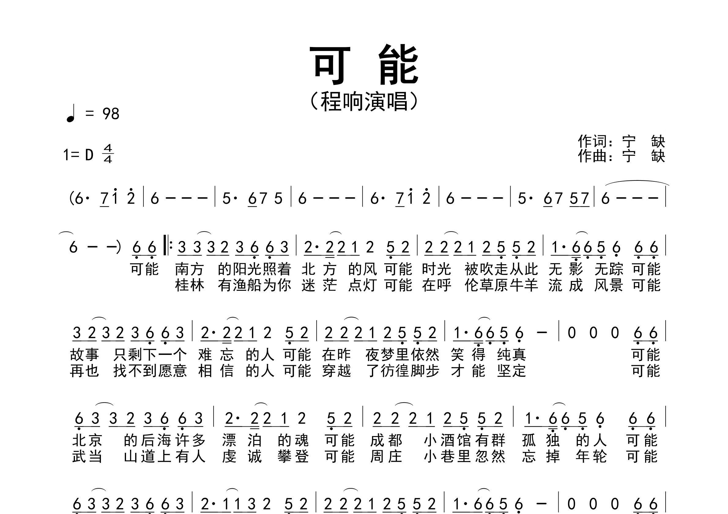 可能简谱,程响的一首歌,歌曲为4/4拍的节奏,歌曲的调式为D调,《可能》歌曲简谱完整曲谱共1张图片谱,由025吉他网上传。
